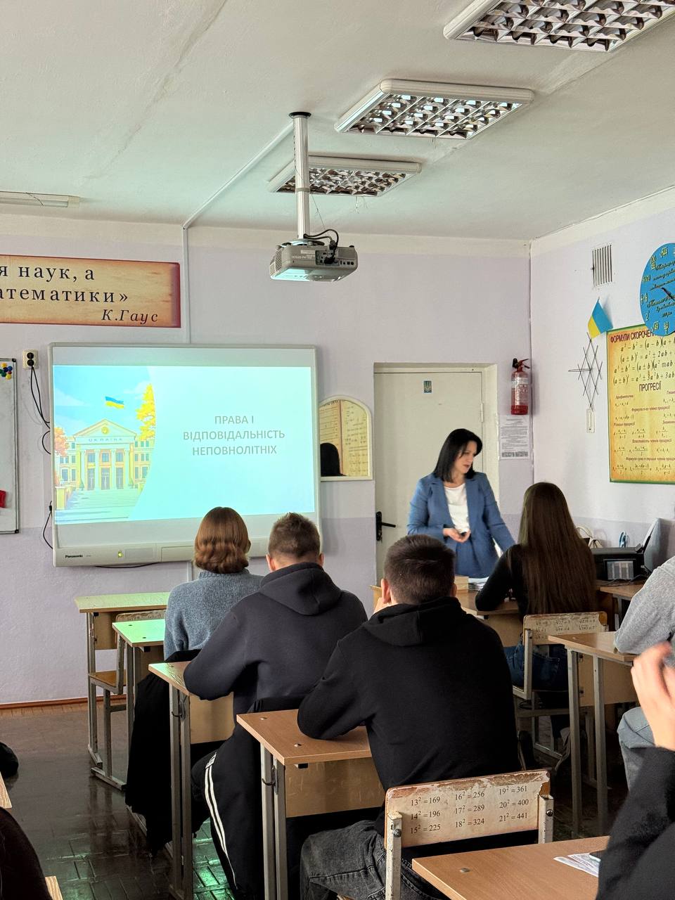 Тема заняття – «Права, обов'язки та відповідальність неповнолітніх» – була розкрита у форматі інтерактивного обговорення.
