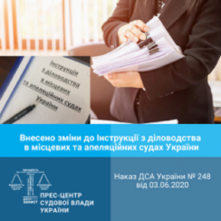 Наказом ДСА України № 248 від 03.06.2020 внесено зміни до Інструкції з діловодства в місцевих та апеляційних судах України.